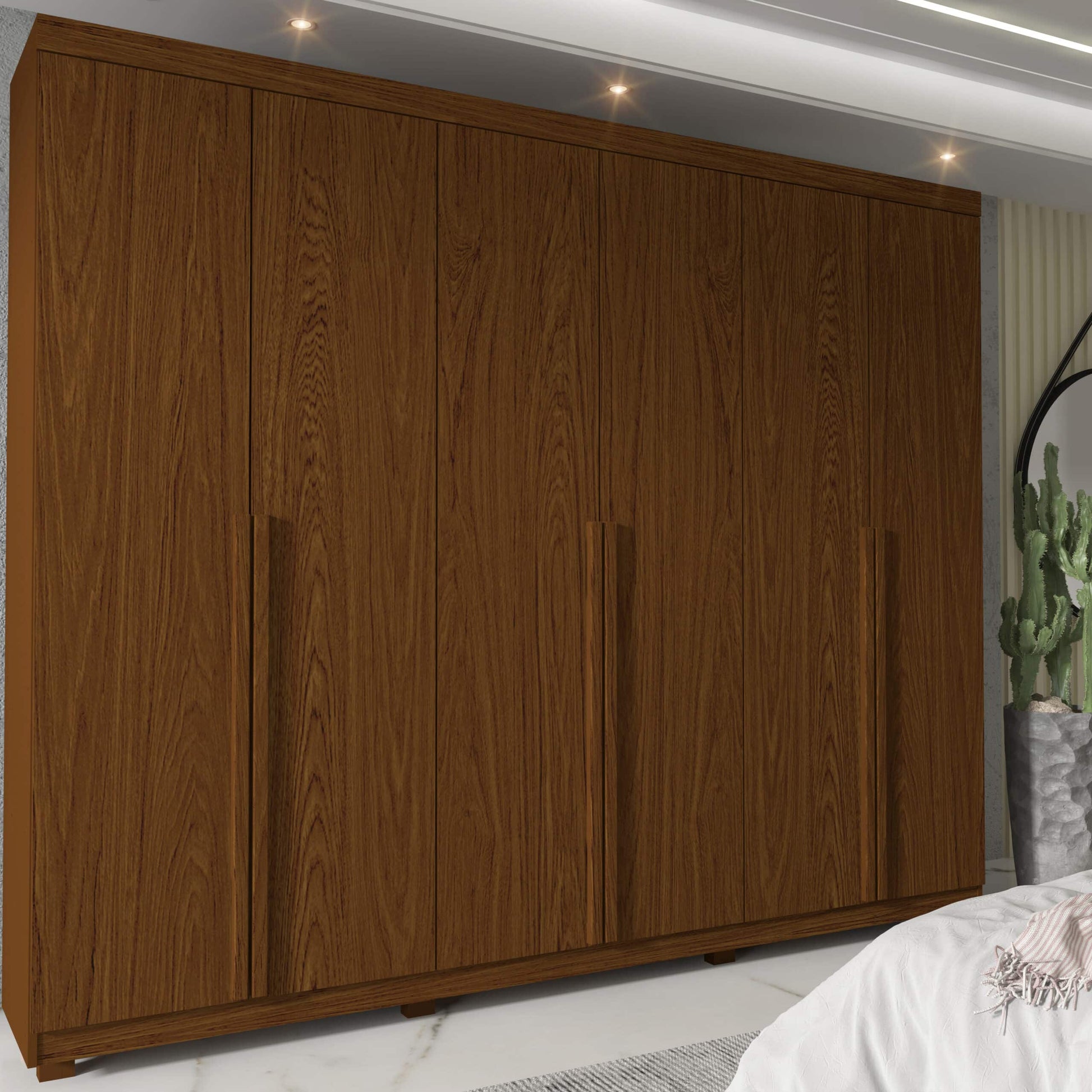 Elegante e imponente, este roupeiro conta com quatro gavetas de corrediças telescópicas, várias prateleiras e uma sapateira inclinada, proporcionando praticidade e otimização de espaço. Seus puxadores longos em MDF com cava conferem um toque de modernidade, e os pés inclusos, além do kit espelho opcional, elevam ainda mais sua beleza.